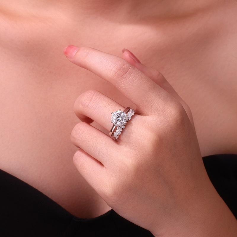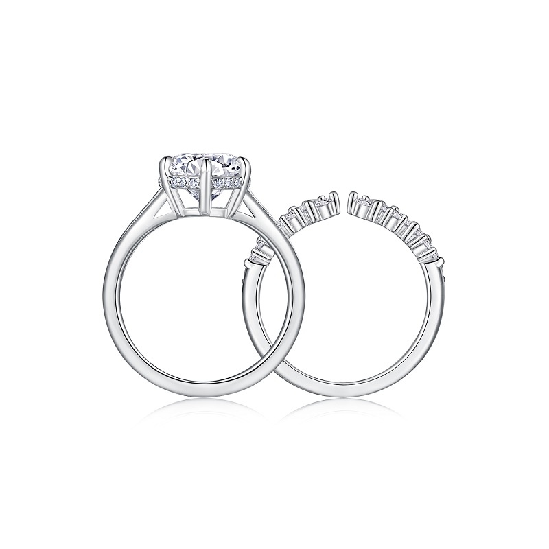 3-carat Double Rings Set With Top-quality Moissanite Luxury And Fashionable Light Luxury Jewelry Silver Ring S925 Silver Electroplated With Gold