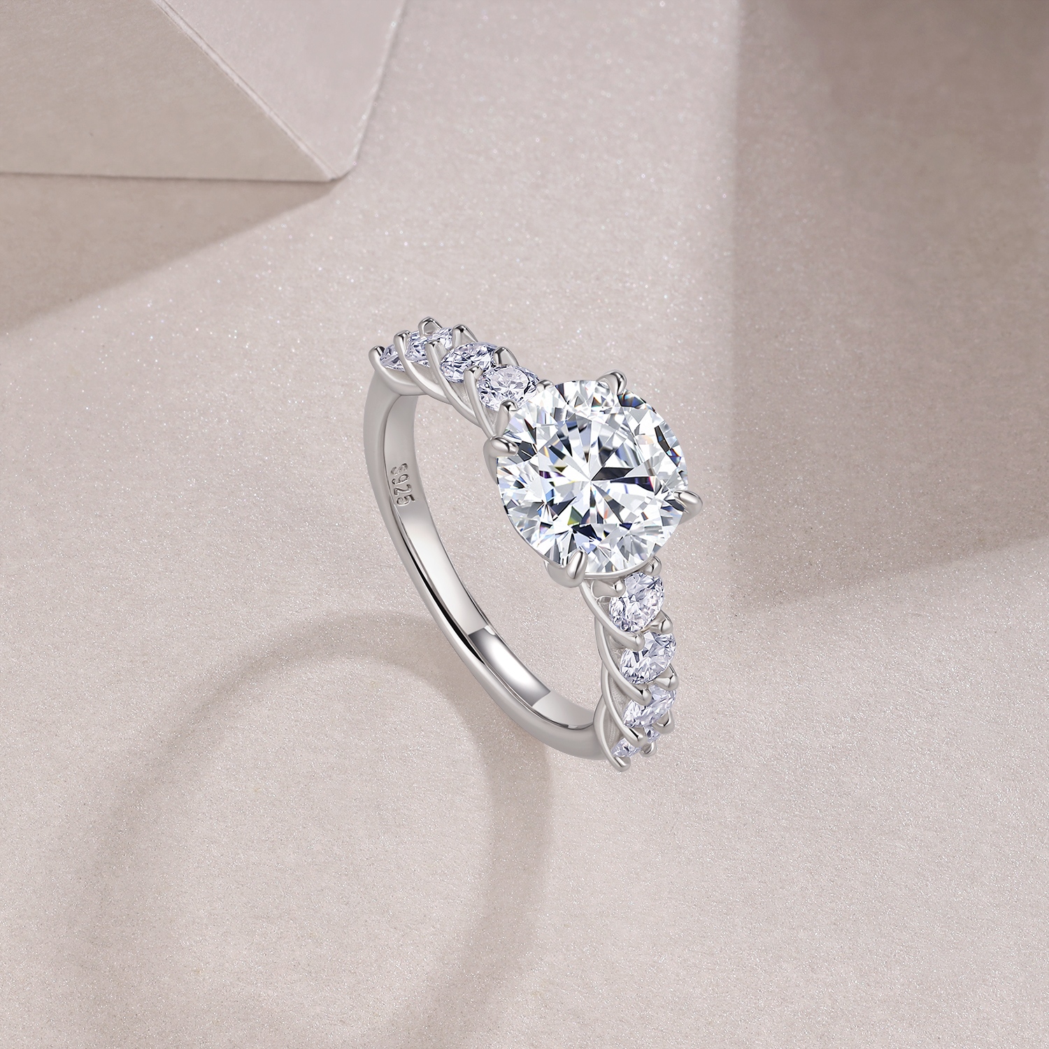 A 3-carat Luxury And Fashionable Light Luxury Jewelry Silver Ring Set With Top-quality Moissanite, S925 Silver Plated With Platinum