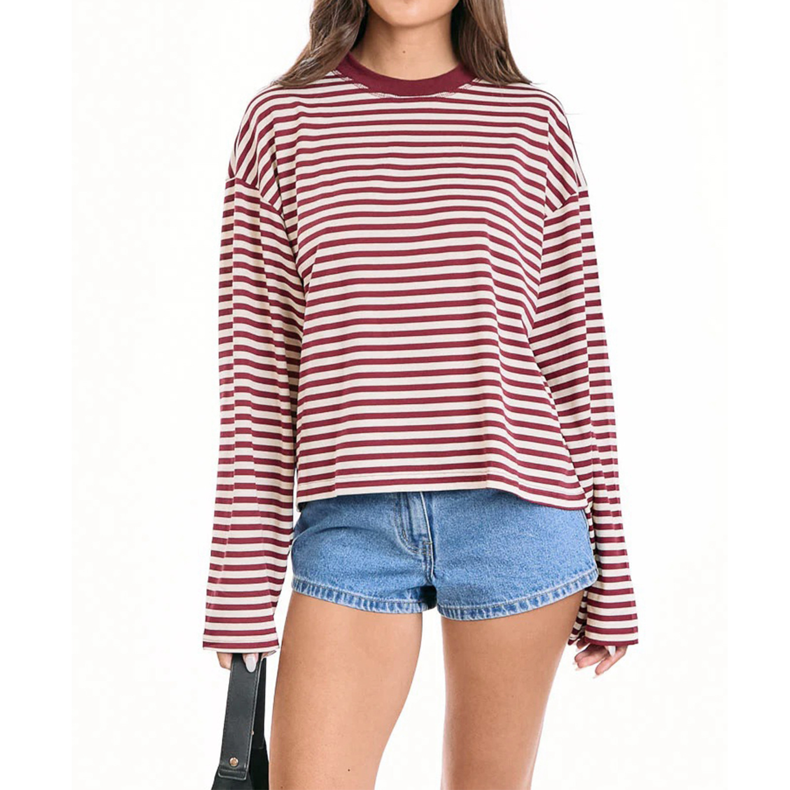 Round-neck Cotton Long-sleeve Striped T-shirt