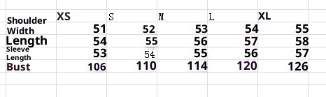 Size: XS, S, M, L, XL