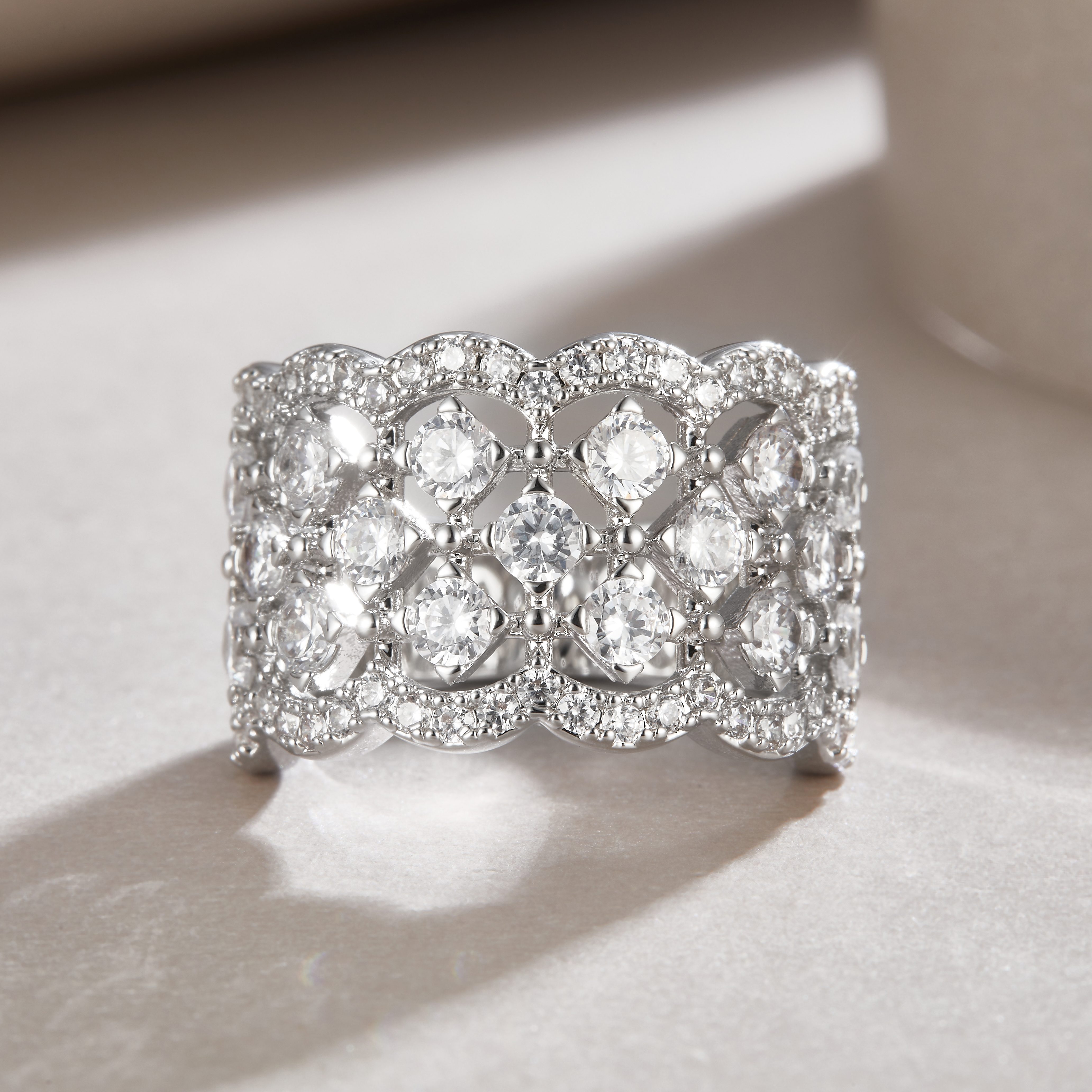 Lace Snowflake - Set With Top-quality Moissanite S925 Silver And Platinum-plated Diamond Wedding Ring. The Ring Can Be Tested With A Diamond Pen In Yellow Gold And Rose Gold