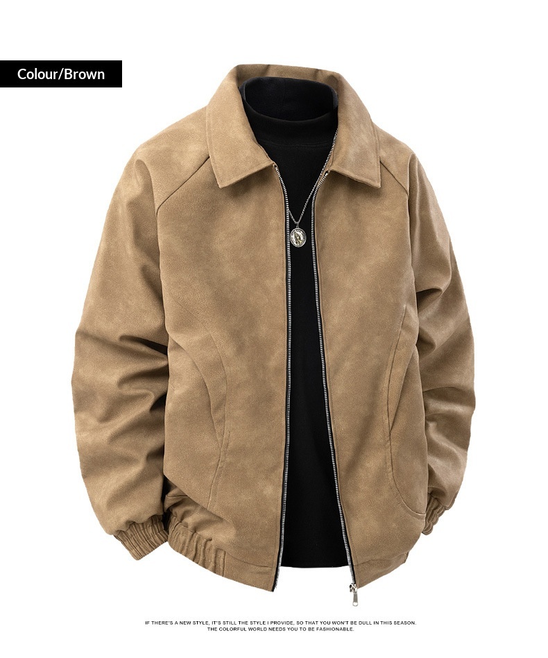 Suede Windbreaker Antique Brown Lapel Jacket