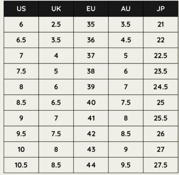 Sizes: 35, 36, 37, 38, 39, 40, 41, 42, 43