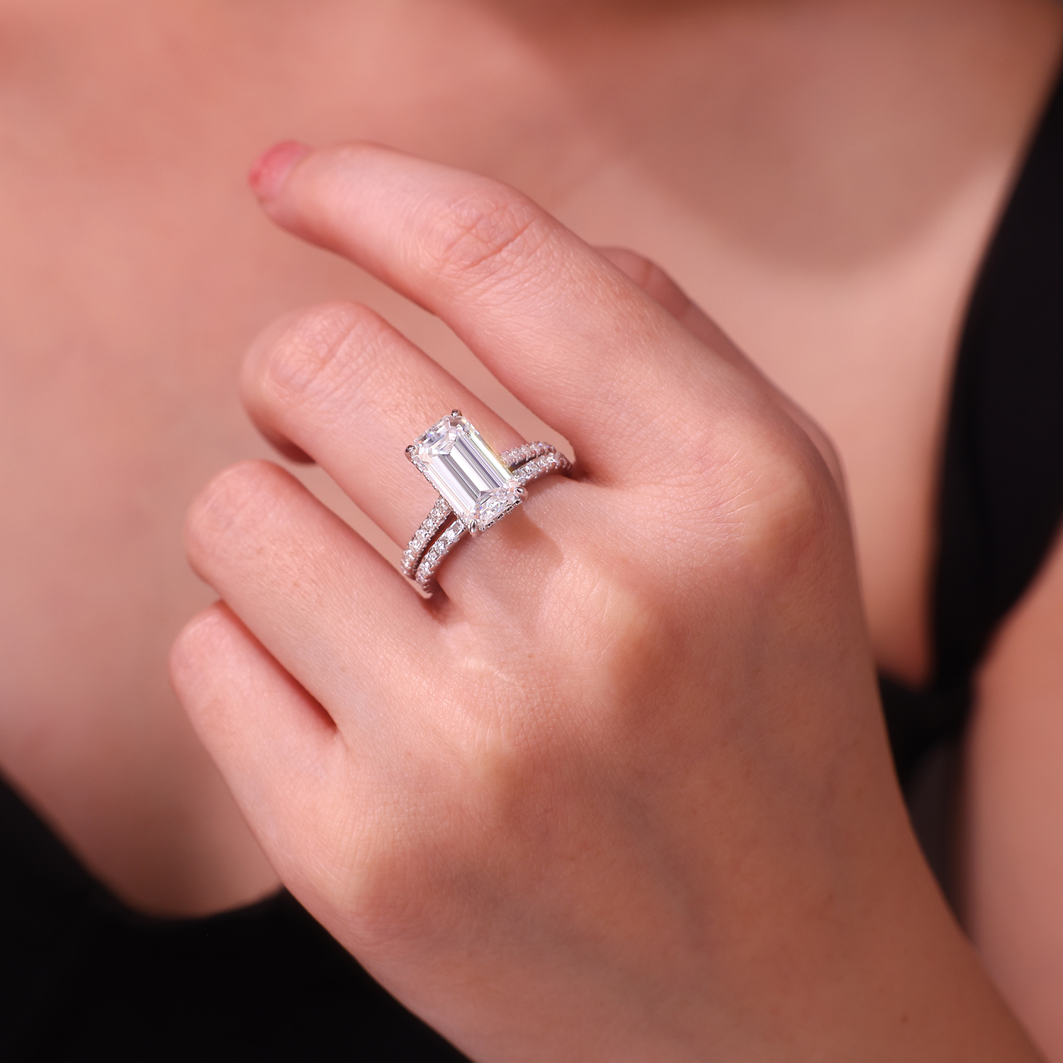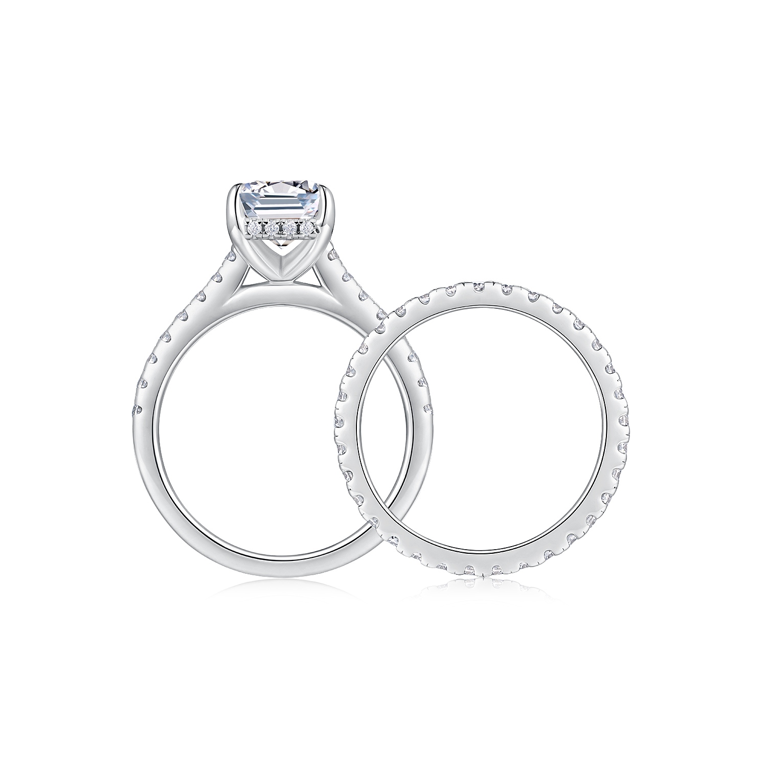 Octagonal Moissanite Double Rings Set With Top-quality Moissanite Luxury, Fashionable And Light Luxury Jewelry Silver Ring S925 Silver Plating Platinum