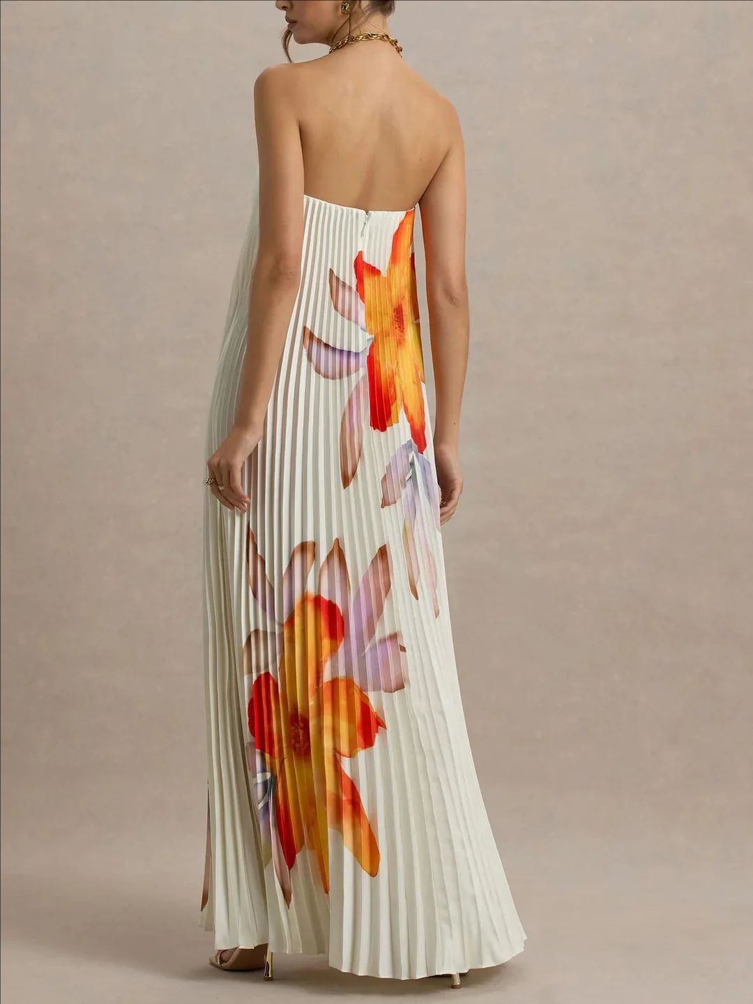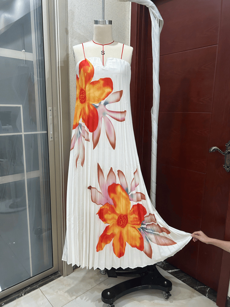 Off-the-shoulder Loose-fit Intricately Pleated Maxi Dress For Women