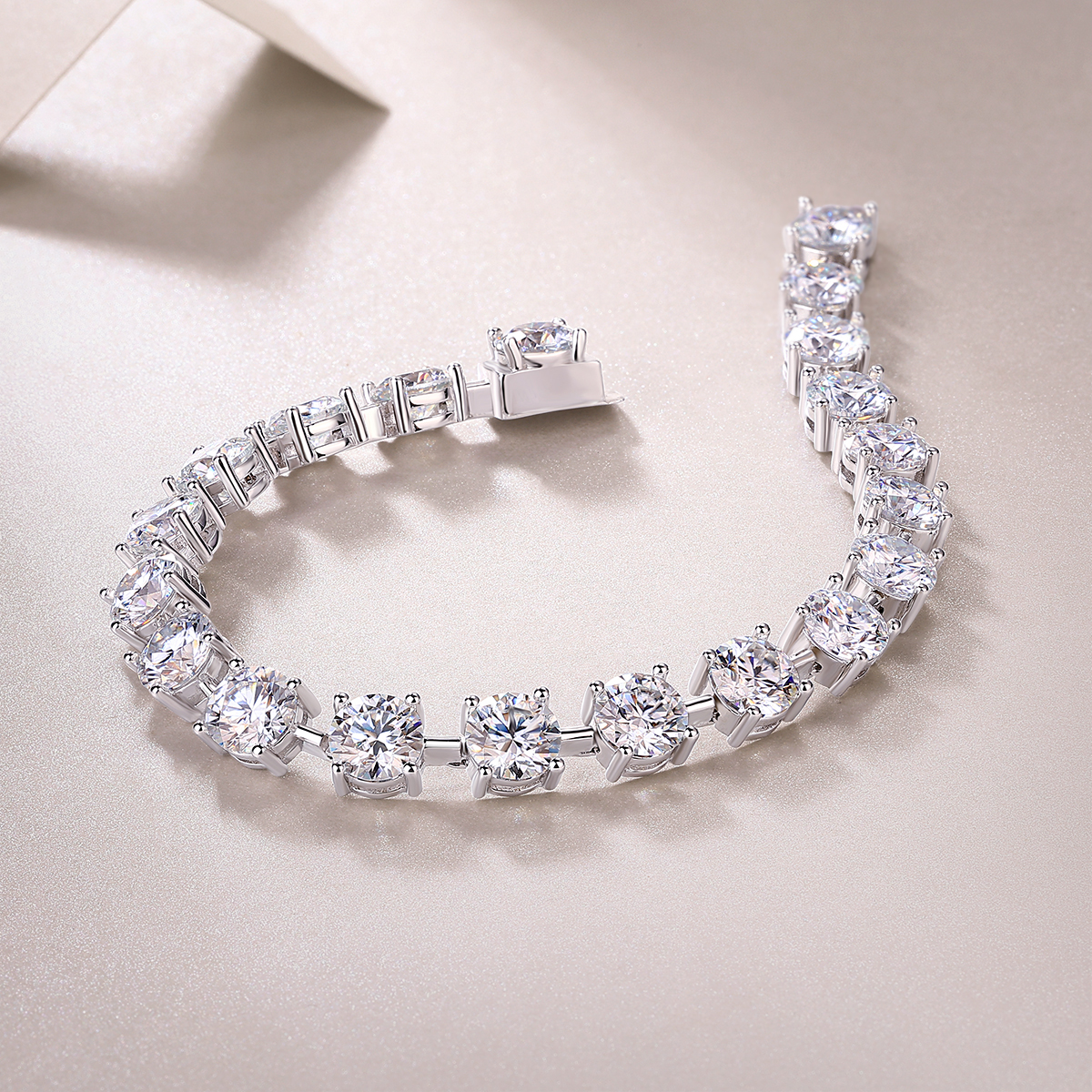 Time Appointment - A Fashionable And Light Luxury Jewelry Silver Bracelet And Bracelet Set With Top-quality Moissanite, S925 Silver Plated Platinum