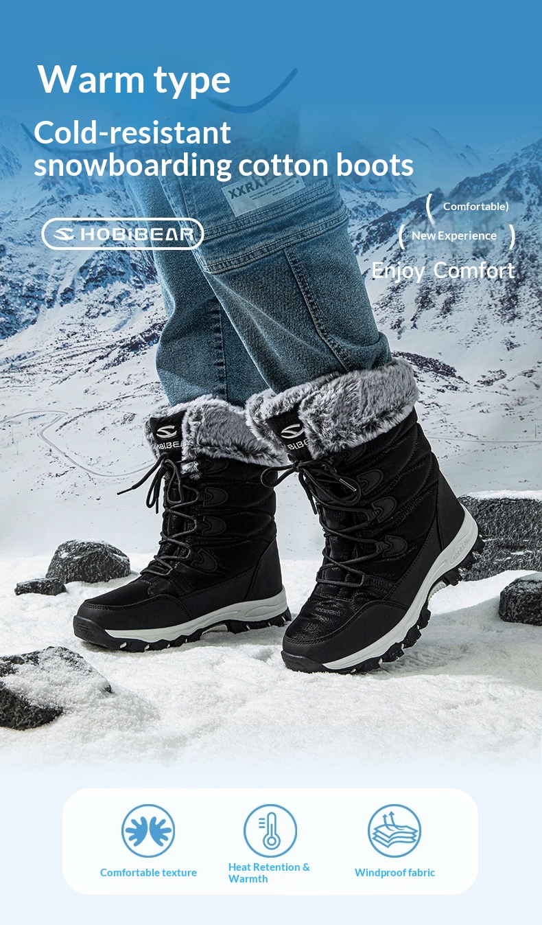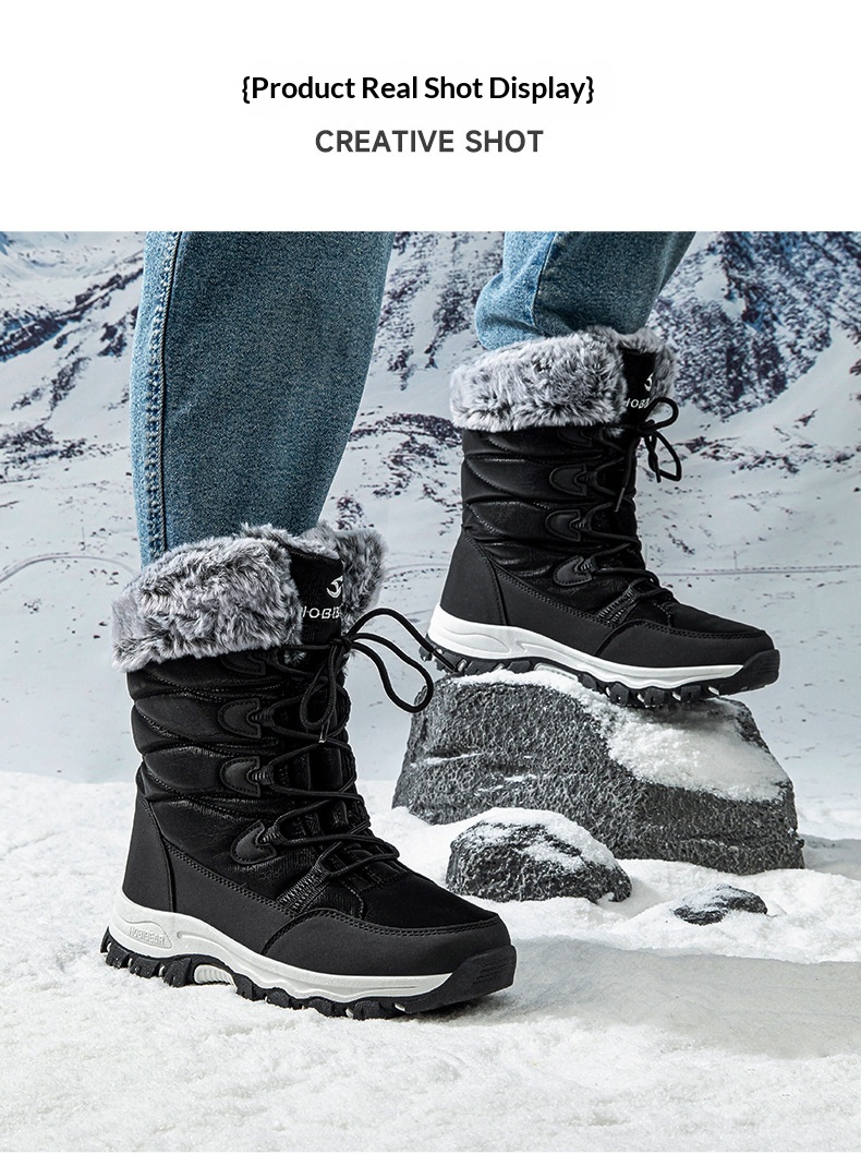 Warm Wide-toe Mid-height Soft-soled Faux-fur Snow Boots