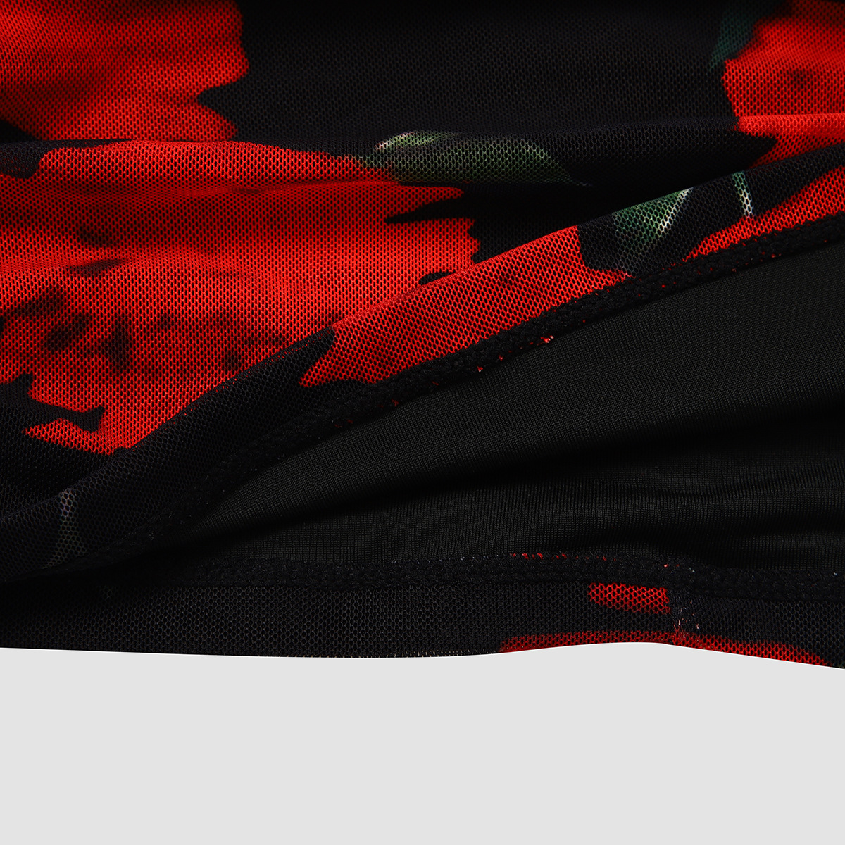 Women's Printed Mesh Suspender Patchwork Retro Dress