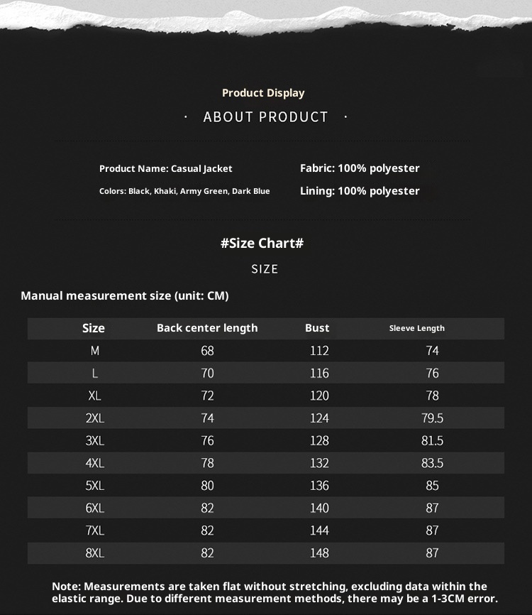 Sizes: M, L, XL, 2XL, 3XL, 4XL, 5XL
